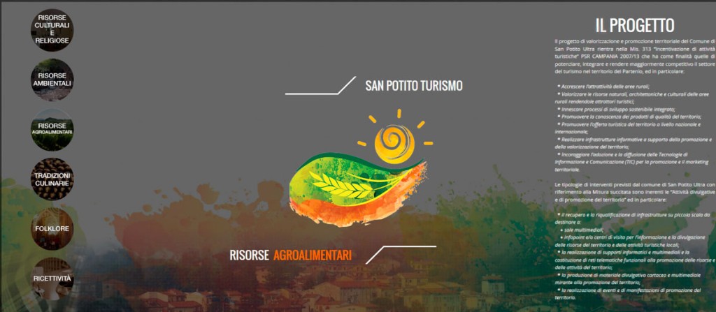 Il progetto di valorizzazione e promozione territoriale del Comune di San Potito Ultra rientra nella Mis. 313 “Incentivazione di attività turistiche” PSR CAMPANIA 2007/13 che ha come finalità quelle di potenziare, integrare e rendere maggiormente competitivo il settore del turismo nel territorio del Partenio.